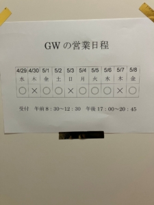 2026年GWの営業について